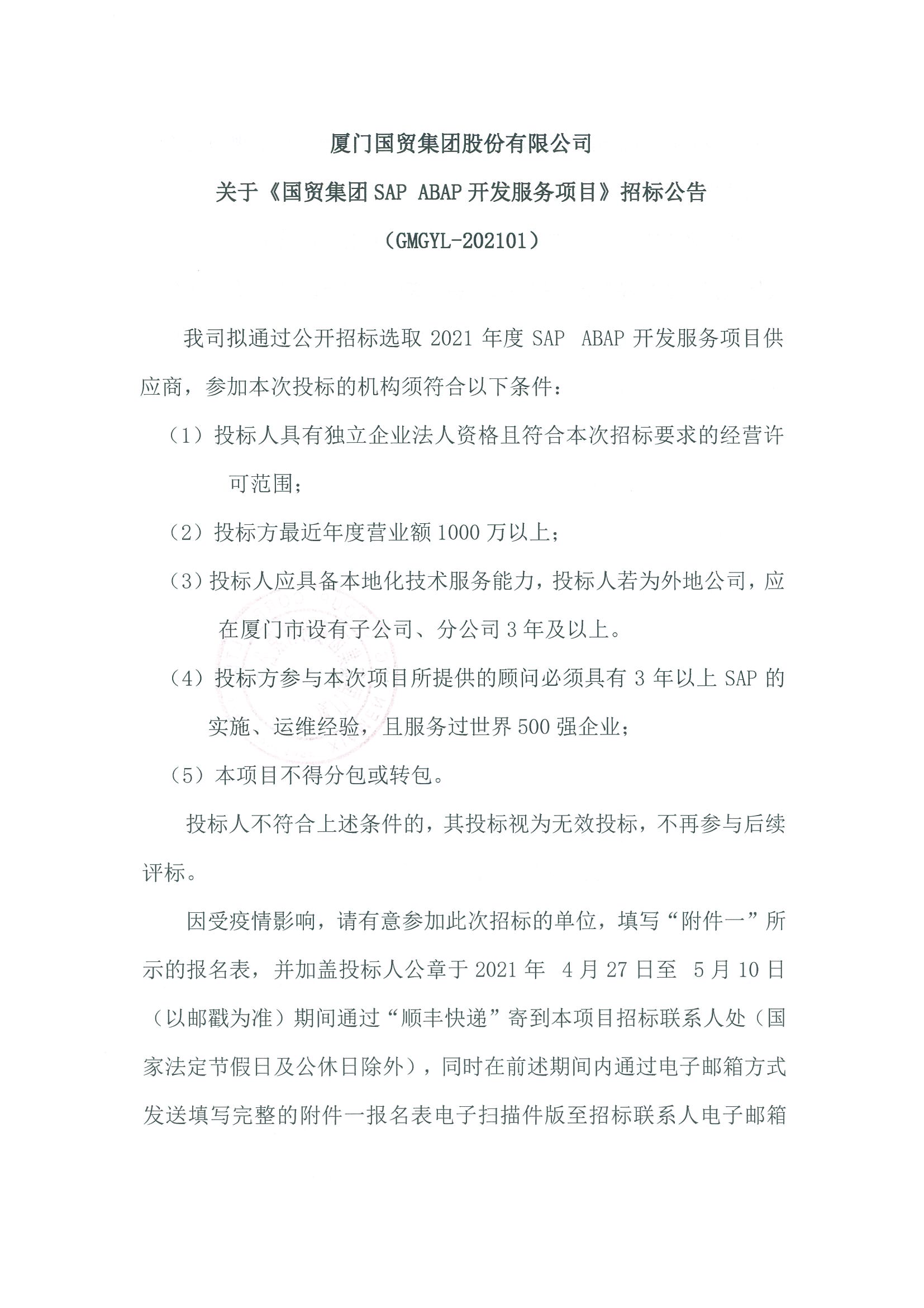 关于《国贸集团SAP ABAP开发服务项目》招标公告