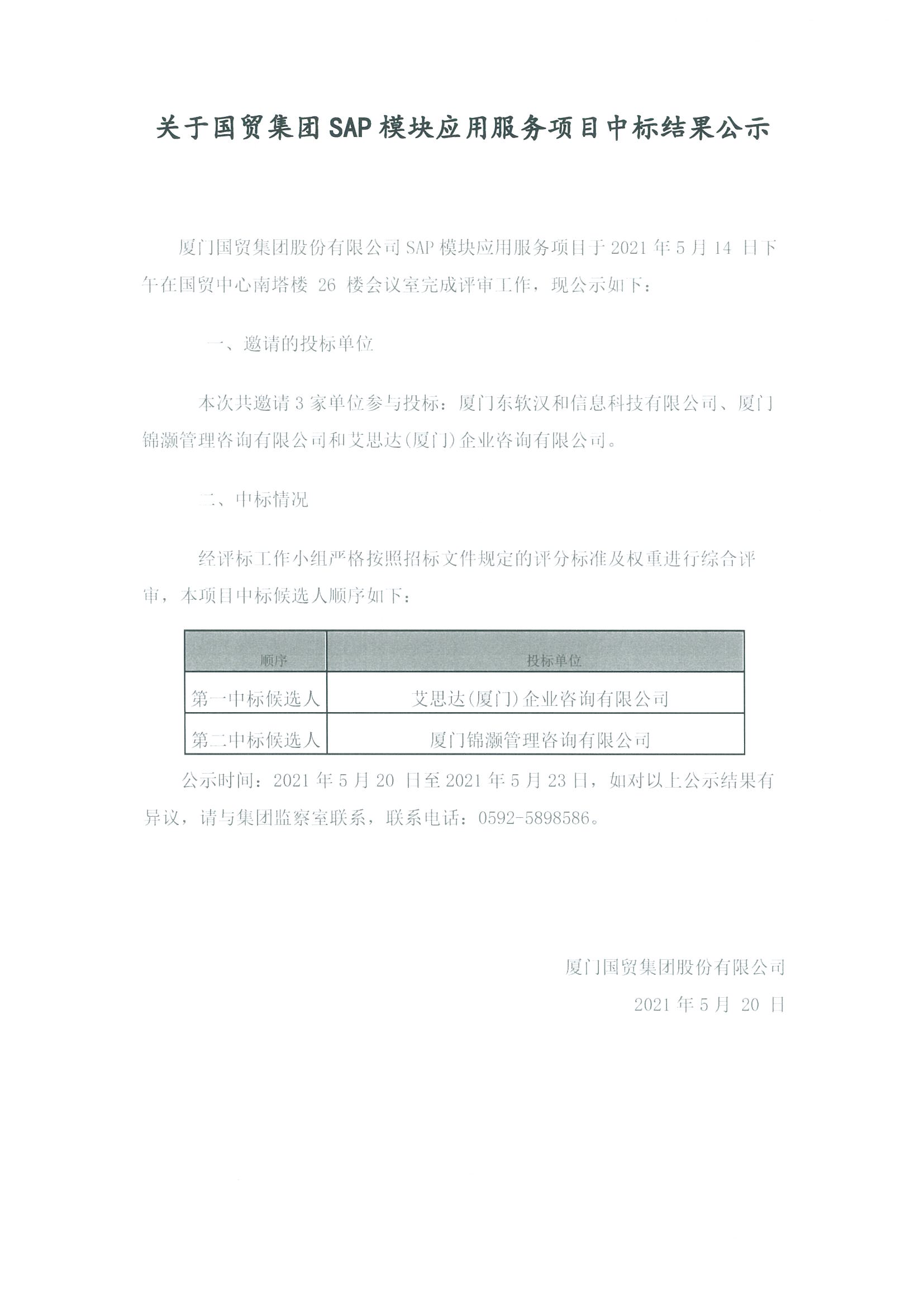 关于自拍色情 集团SAP模块应用服务项目中标结果公示